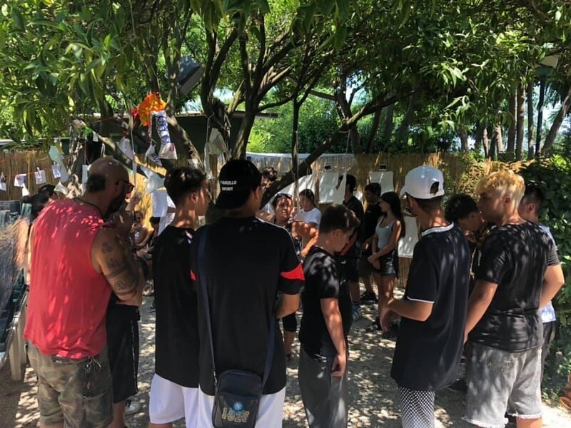 L’attività riguarda un soggiorno residenziale, svolto sull’isola di Procida dal 22 al 26 luglio 2019, e prevede un’esperienza di gruppo con forte valenza educativa, in quanto i minori affrontano lontano dal proprio quartiere e dalle proprie famiglie, in un contesto non conosciuto e usuale, diverse esperienze quali: l’autonomia, la condivisione dei tempi e dei luoghi, la cooperazione. L’attività è rivolta a un gruppo misto di minori di età compresa fra i 9 ed i 16 anni, iscritti al LET e partecipanti assidui, per i quali è in corso un progetto educativo individuale e/o di gruppo. Il coinvolgimento di minori di età diverse permette di stimolare l’alleanza e la cooperazione tra pari nelle diverse fasce di età (adolescenti, preadolescenti e bambini). La finalità del soggiorno è l’accompagnamento dei minori alla scoperta della storia, della natura, delle tradizioni dell’isola. Difatti, si è promossa la conoscenza delle modalità con cui visitare un nuovo luogo al fine di ampliare il proprio bagaglio di conoscenze. I minori partecipano attivamente, con gli educatori, alla co-costruzione delle attività che li vede protagonisti. Nel concreto, sono realizzate giornate con l’attività di balneazione al mattino e visite guidate presso luoghi significativi (Terra Murata, Vivara, Basilica di San Michele, il Faro) associate a un momento elaborativo laboratoriale durante le ore pomeridiane e serali. La metodologia adoperata durante il soggiorno è quella del fare. Durante i momenti comuni, i minori organizzati in gruppi misti, con il supporto di tutta l’equipe e del coordinatore, sistemano gli spazi, organizzano i pasti principali (stilando la lista della spesa, andando a fare la spesa, preparando i pasti). La scelta di Procida è motivata dal fatto che l’isola è un luogo che favorisce gli spostamenti a piedi, stimolando lo spirito del viaggiatore e l’autonomia. Inoltre, il camping “La caravella” è collocato in una posizione strategica e centrale dell’isola, vicino a diverse spiagge, ed è organizzato in bungalow di legno e roulotte collocate intorno ad un’area comune. In quest’area si sono svolte tutte le attività comuni, con un forte un senso di circolarità e condivisione.