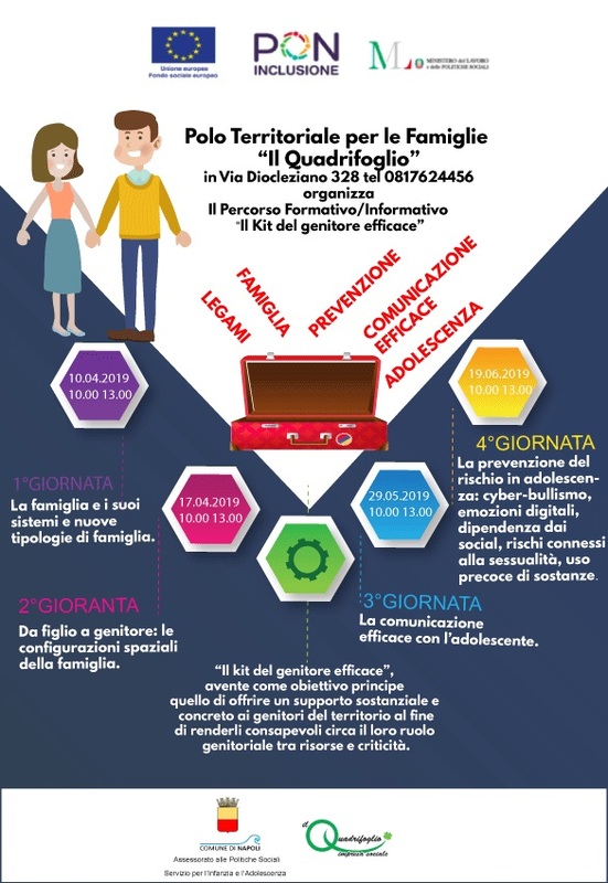 L’attività riguarda un ciclo seminariale formativo ed informativo volto ad offrire un supporto concreto ai genitori al fine di renderli consapevoli circa il loro ruolo tra risorse e criticità, soprattutto rispetto alla fase preadolescenziale e adolescenziale. Tale ciclo di incontri ha un mandato di prevenzione, in quanto le criticità emerse durante le attività del Polo, l’esperienza del servizio nel lavoro con le famiglie ed il costante raccordo con i servizi sociali territoriali, mette in luce la necessità di intervenire preventivamente a supporto della funzioni genitoriali ancor prima della rilevazioni di situazioni di disagio conclamato.